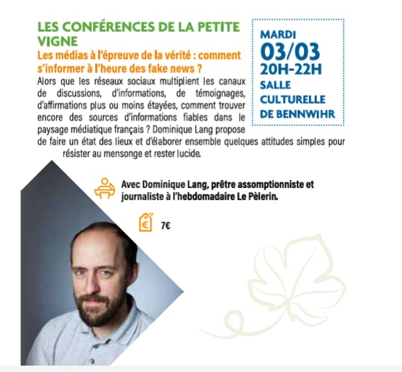 Mis en avant 20h00 à 22h00 Les conférences de la Petite Vigne – « Les médias à l’épreuvce de la vérité : Comment s’informer à l’heure des fakes news ? »